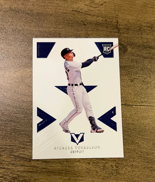 This 2022 Panini Chronicles Vertex rookie card of Spencer Torkelson is a vibrant collectible for Tigers fans, showcasing a top prospect!