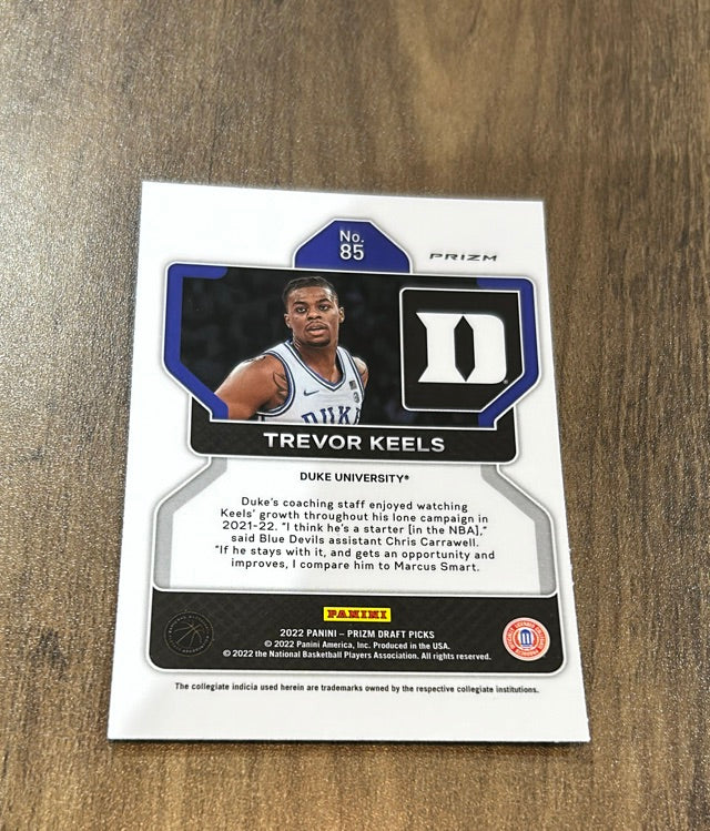 This 2022 Panini Prizm Draft Picks Green rookie card of Trevor Keels is a vibrant collectible for Duke Blue Devils and Knicks fans, in near mint condition!