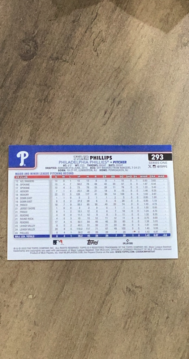 **Philly fans, your next arm!** Tyler Phillips’ **Topps RC** is a Citizens Bank Park must.