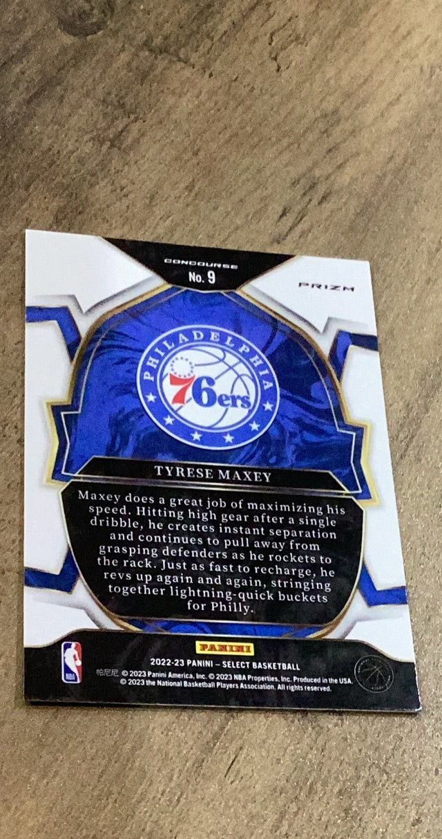 Tyrese Maxey 2022-23 Panini Select - Orange Flash Prizms trading card. 9