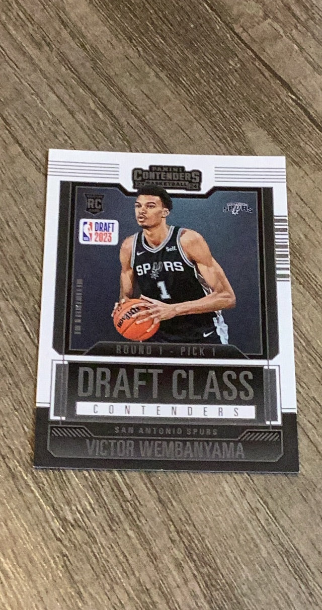 This 2023-24 Panini Contenders Draft Class Contenders rookie card of Victor Wembanyama is a premium collectible for San Antonio Spurs fans, showcasing a generational talent and 2024 All-NBA star!