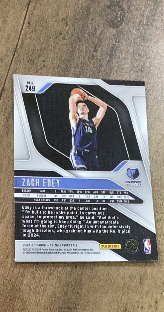 Zach Edey 2024-25 Panini Prizm #249 rookie card.
