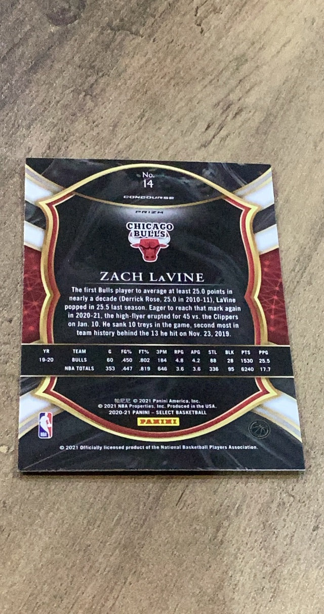 Zach LaVine 2020-21 Panini Select - Red White Orange Shimmer trading card. 14