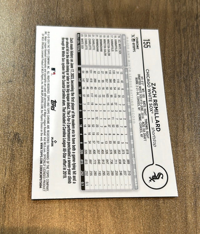 This 2024 Topps Chrome Refractors rookie card of Zach Remillard is a vibrant collectible for White Sox fans, featuring a dynamic parallel in new condition. Perfect for MLB collectors!